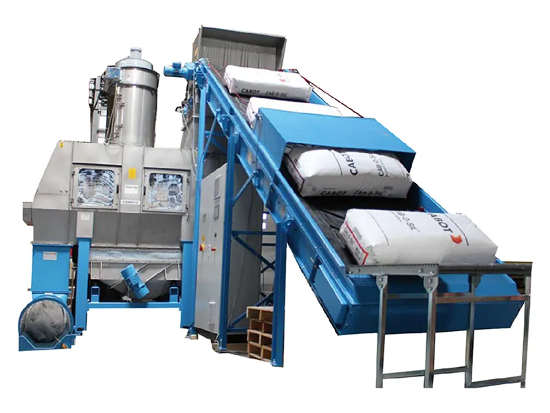 این سیستم که برای جابجایی کیسههای کوچک با وزن معمول حدود ۲۵ کیلوگرم طراحی شده است، کل فرآیند تغذیه، برش، تخلیه و جمعآوری کیسههای خالی را خودکار میکند.