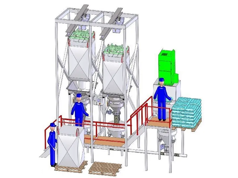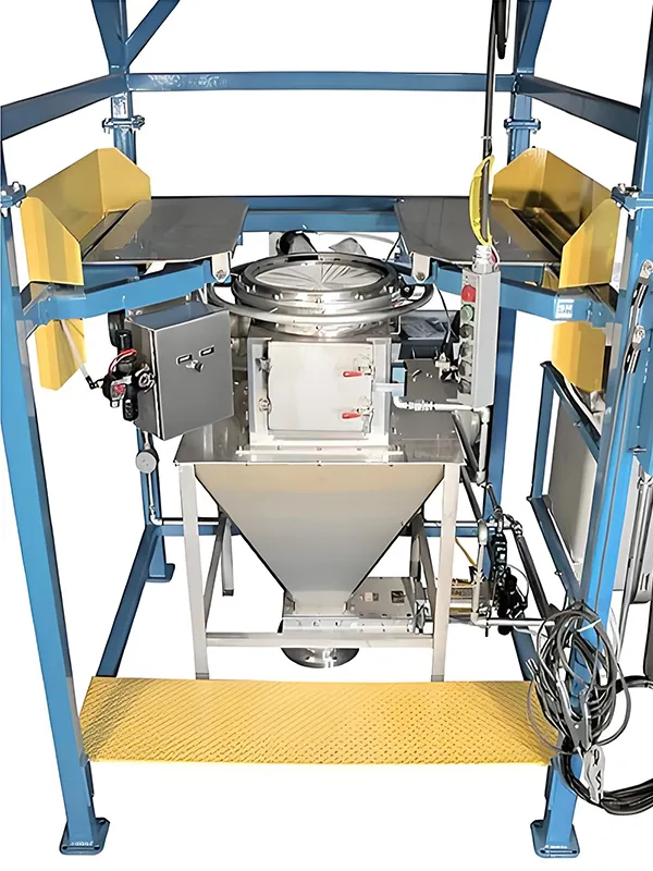ایستگاه تخلیه کیسه، که به عنوان ایستگاه تخلیه کیسه بدون گرد و غبار نیز شناخته میشود، برای تخلیه دستی کیسههای کوچک و کیسههای فله (کیسههای تنی) طراحی شده است. اپراتورها کیسهها را به صورت دستی باز کرده و در قیف تغذیه خالی میکنند، جایی که نیروی جاذبه به انتقال مواد به داخل مخزن ذخیرهسازی کمک میکند. کل فرآیند محصور شده است و توسط یک سیستم یکپارچه حذف گرد و غبار شامل بدنه ایستگاه، فیلتر و فن مکش گرد و غبار پشتیبانی میشود تا از انتشار گرد و غبار جلوگیری کرده و محیط کاری تمیزی را حفظ کند.